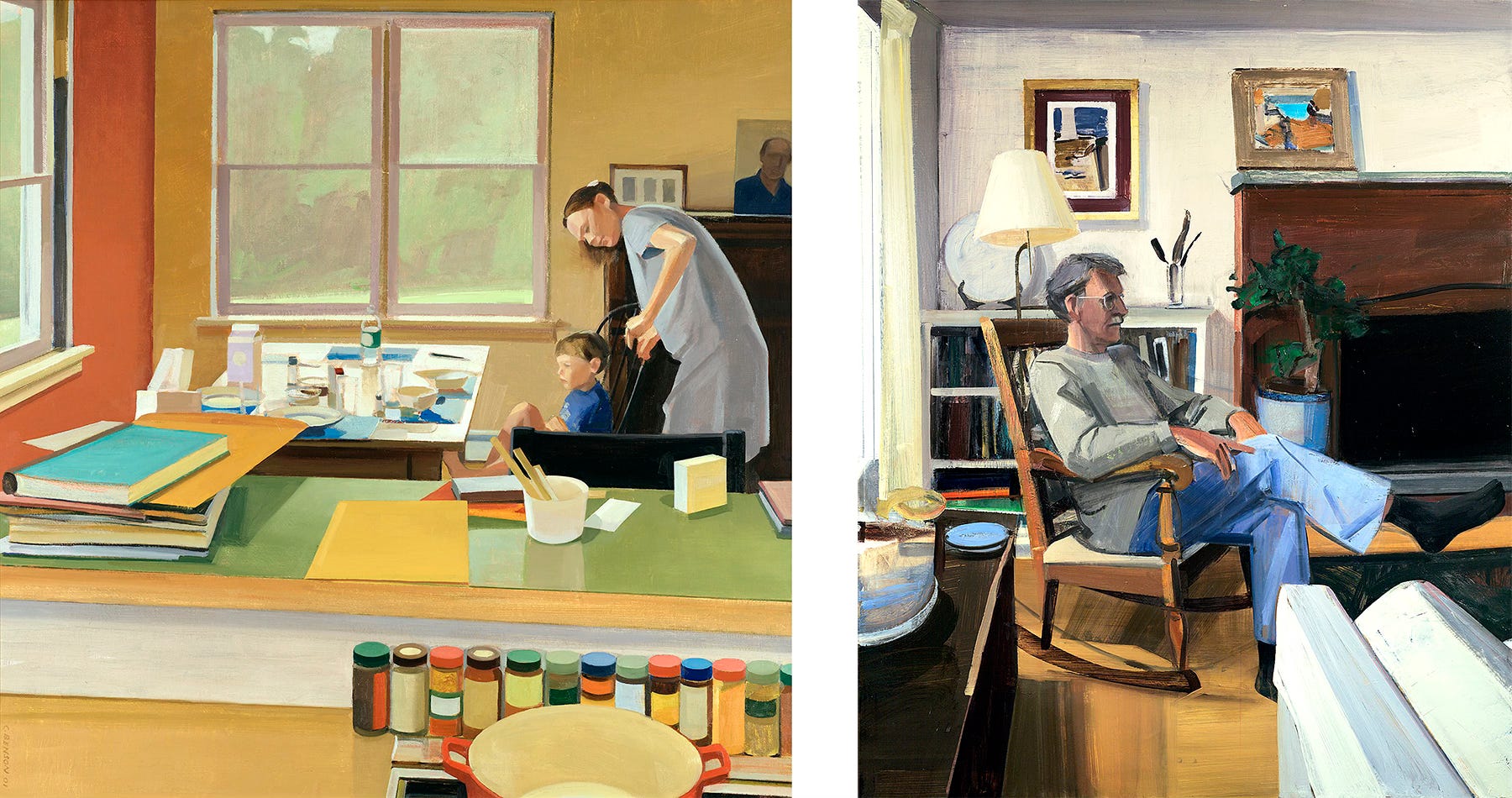 The director was an elegant person with a friendly but cool demeanor. I had brought two paintings to show her, one an example of where I had been, the other an indication of where I was going (or more exactly, where I hoped to go). They were each samples of the best painting I could do at the time, but the latter — a brusquely expressive painterly portrait set in an interior — expressed where my heart really resided at that point, where the former — also a figurative interior, but more starkly realistic — was the apotheosis of a style that I felt had run its course. I had exhausted my pleasure in that work and was eager to move on to something new.