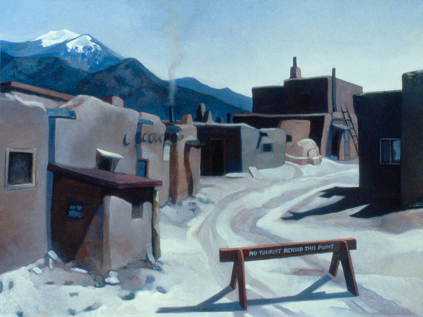 Does it always work? No, of course not. There are places where one simply does not belong, and never will. Part of the mindset of living and traveling in this way is to also be sensitive to those places and people who do not want us, because there will always be some who feel that way. When I first moved to New Mexico in my late twenties, I had it in my head to visit and make pictures about the native world of the old Pueblos and reservations that overspread the territories between eastern Texas and western Arizona. I did go and visit some of those places upon my first arrival in Santa Fe, but my immediate instinct was to respect them enough to stay away and if I made paintings about them, it was always with a pretty clear sense that I was at best a guest and at worst an invader. Everything about them — even when they were actively inviting tourism from economic necessity — seemed to say “No, you are not welcome here and you will never belong to this place or to these people.” The only time when I was able to make a small shift past that barrier of native unfamiliarity and distrust was when a Navajo man whom I had met through mutual friends, and for whom I had done some archival photographic work, invited me to come and stay at his house near the Chuska mountains on the Big Reservation in Arizona. I went to see him there twice, and both times I was made to feel welcome and at home, but I never would have ventured into his world (after those first uncomfortable forays in my twenties) absent such a clear and friendly invitation.